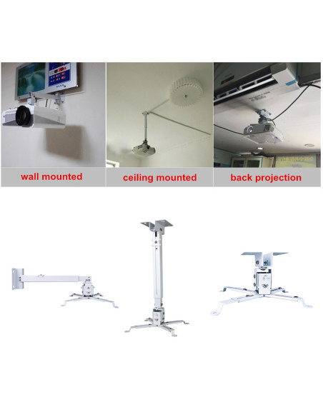 Ce support universel est conçu pour s’adapter à la majorité des projecteurs du marché. Sa plage de réglage en hauteur de 43 à 65 cm permet d’ajuster facilement la distance et l’angle de projection pour obtenir une image parfaitement cadrée 📽️✨.
